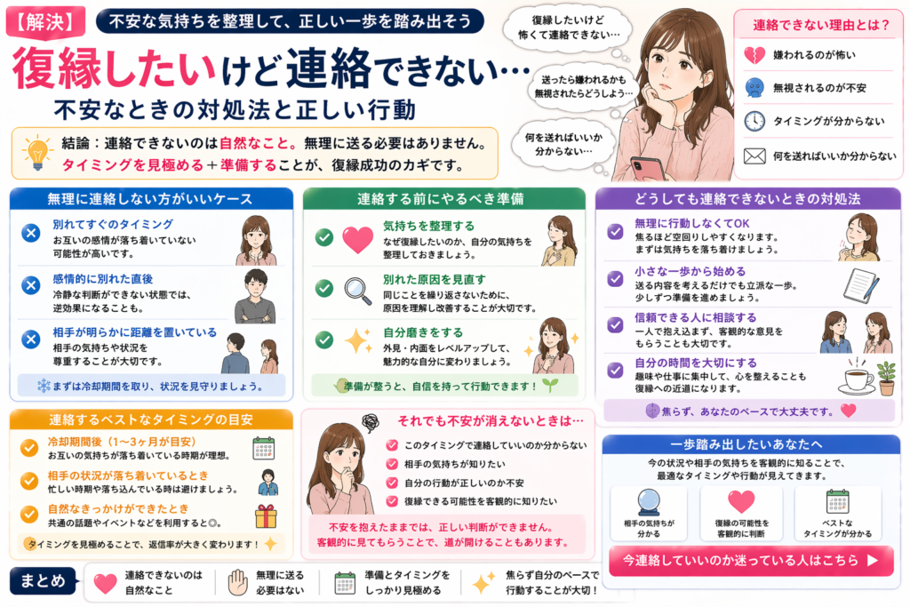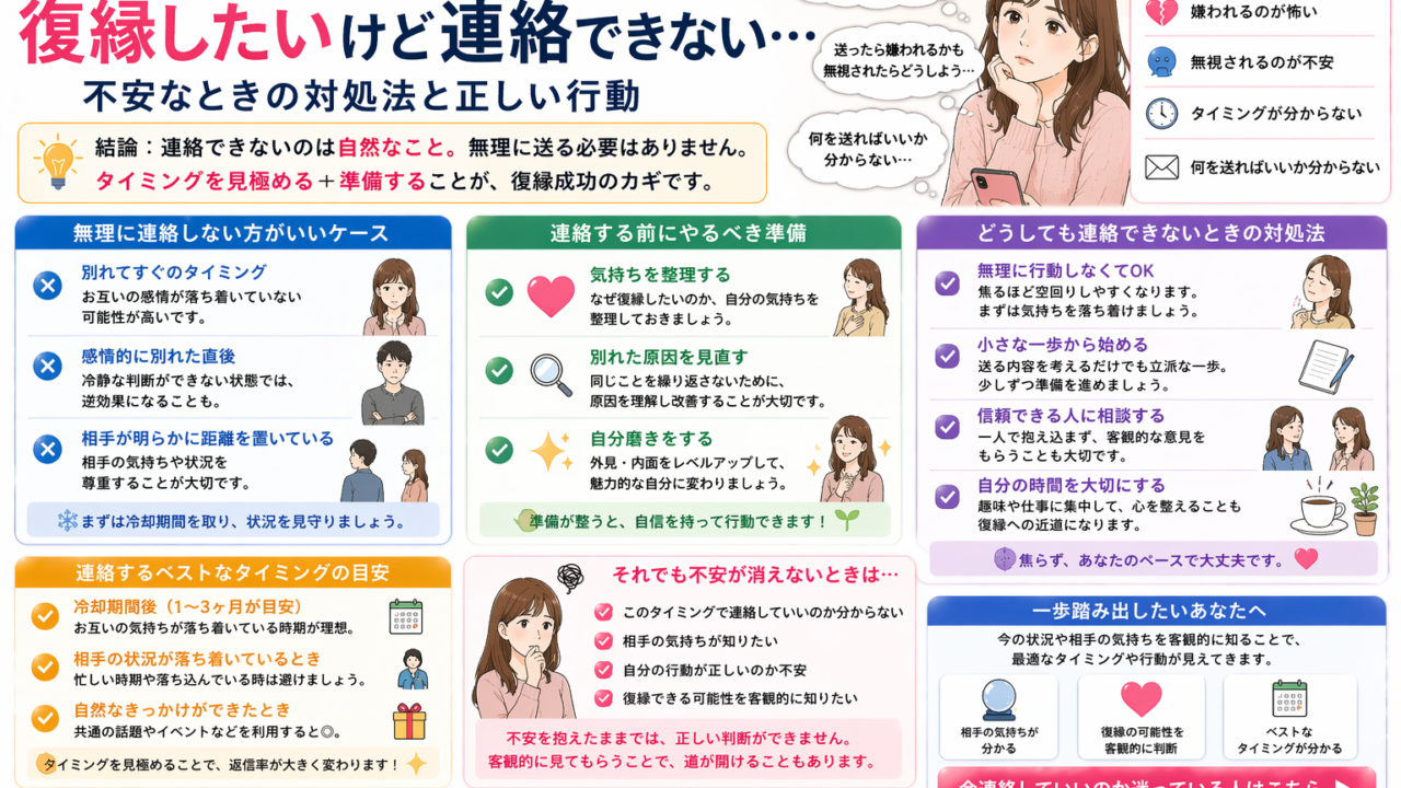 【解決】復縁したいけど連絡できない…不安なときの対処法と正しい行動